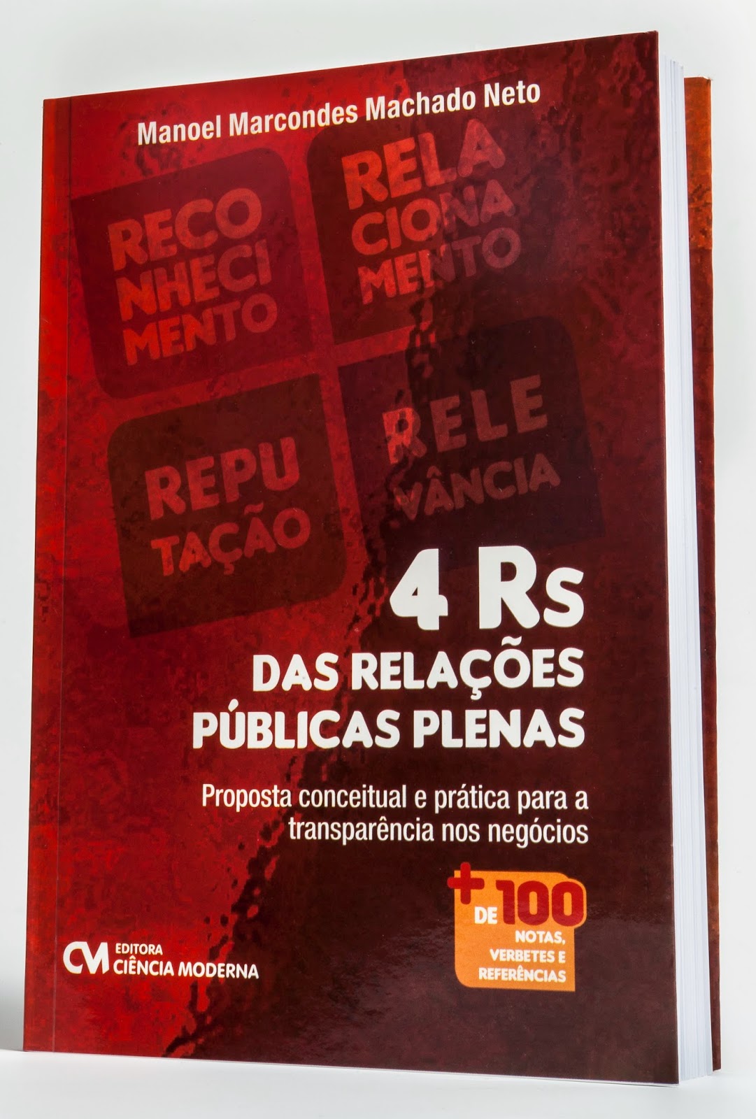 Novidade para profissionais de comunicação, como eu! Acaba de ser lançado (abril/2015) o livro “4 Rs das Relações Públicas Plenas: proposta conceitual e prática para a transparência nos negócios”, publicado pela editora Ciência Moderna, escrito por Marcondes Neto, doutor em Ciências da Comunicação pela USP e professor da Faculdade de Administração e Finanças da UERJ, que busca trazer à tona as reais demandas das organizações – públicas e privadas – para alcançar uma excelência de imagem e de reputação no mercado.