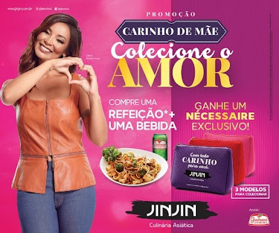 São Paulo, 30-04-2018- Para celebrar umas das datas mais importantes do ano, a Jin Jin, tradicional rede de culinária asiática, lança, a partir do dia 1º de maio, a promoção “Carinho de Mãe” e presenteará os clientes da rede com um nécessaire em comemoração ao Dia das Mães, celebrado no próximo dia 13 de maio.